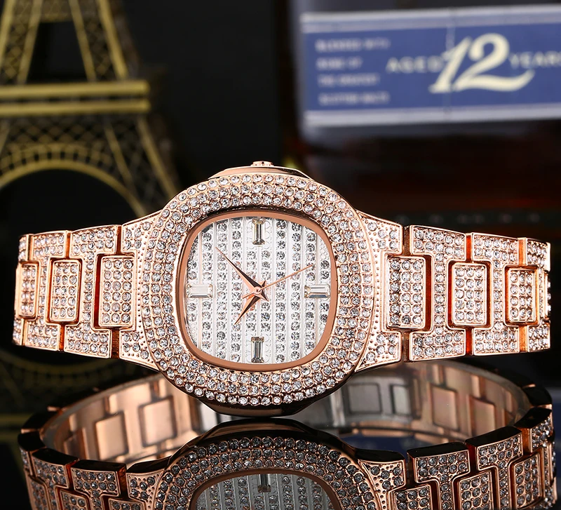 Новинка 2021, фирменные часы в стиле хип-хоп с фианитом и кожаным ремешком, модный роскошный браслет с бриллиантами из нержавеющей стали для бизнеса, подарок