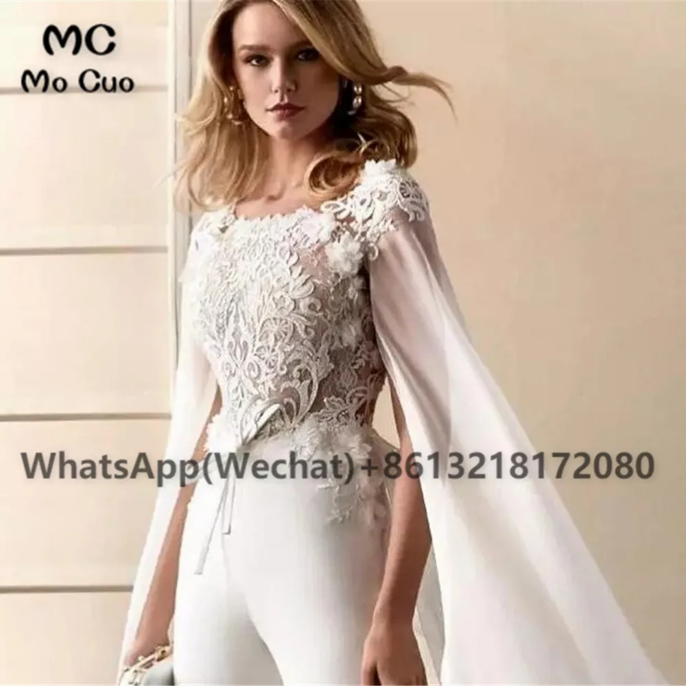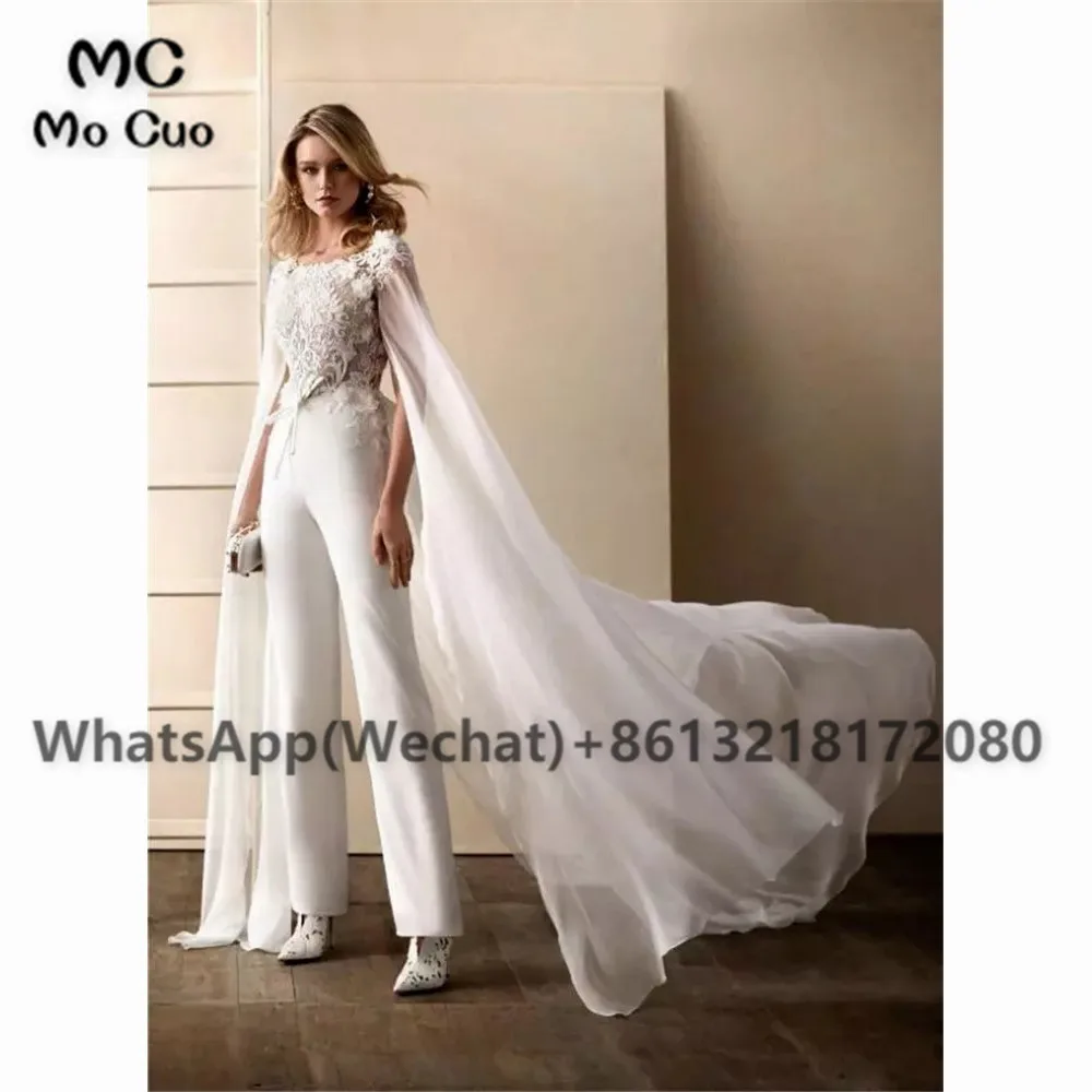 Женское свадебное платье со шлейфом, белое кружевное платье с длинными рукавами и аппликацией, платье в пол, стиль бохо, 2021