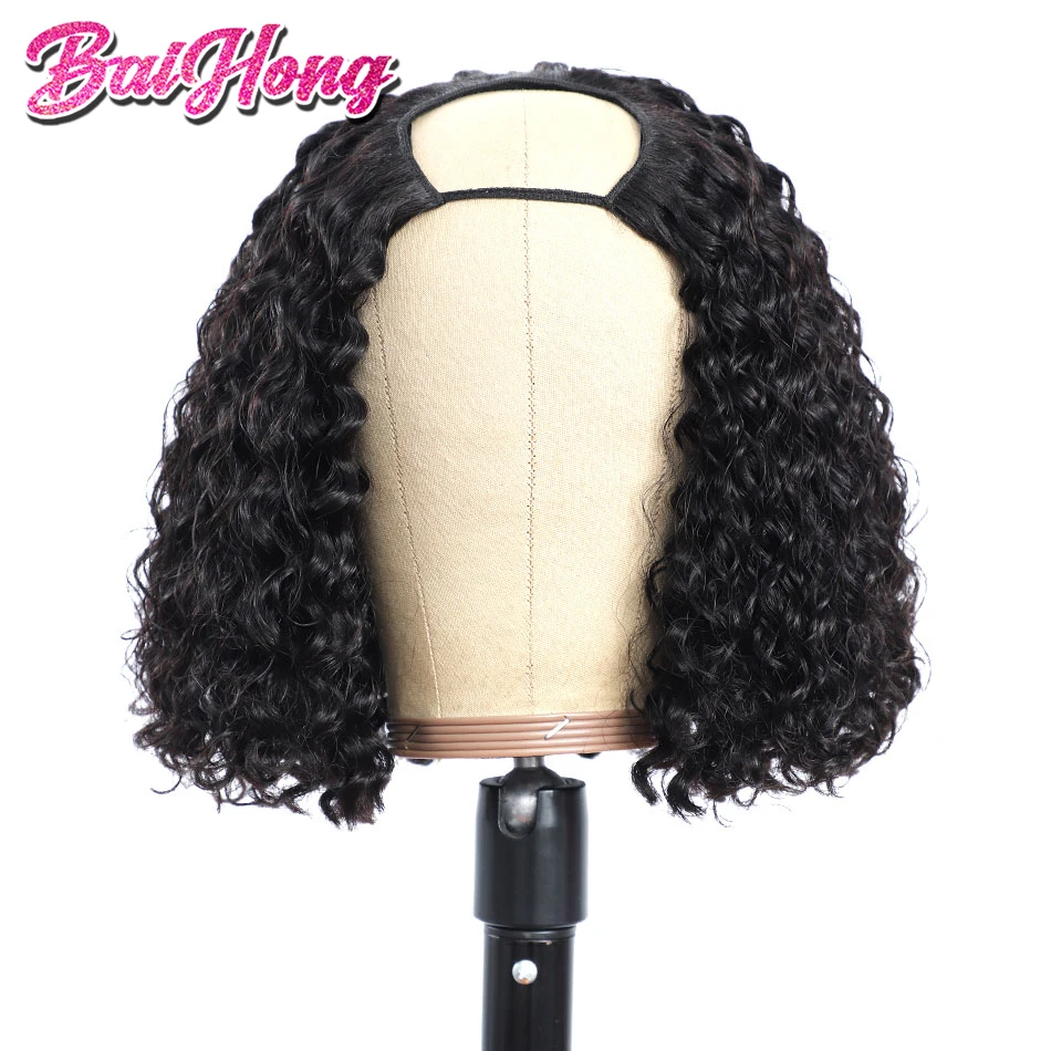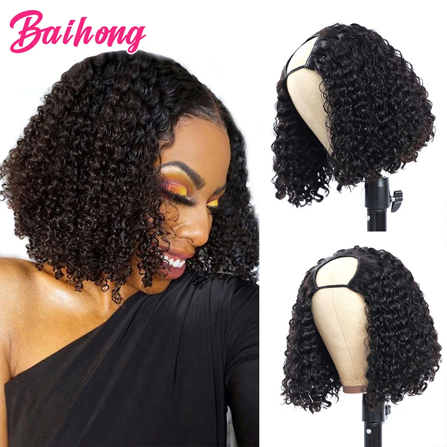 Кудрявые короткие волосы Боб U часть парик человеческие волосы для женщин бразильские Дешевые Натуральные гладкие волосы вырезанные человеческие парики без клея Baihong