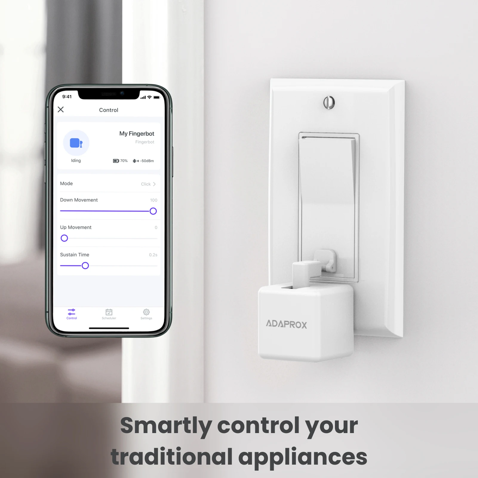 Этот умный робот умно контролирует различные типы кнопок и переключателей. Он может управлять вашей существующей бытовой техникой с помощью роботизированных кликов. С помощью этого робота вы можете переключить свет через приложение, запланировать Утренний кофе, активировать пылесос с голосовой командой, приходите на anf попробуйте, он не подведет вас.Особенности:Этот finger bot совместим с различными кнопками и переключателями. Он может просто прилипать к любой поверхности и модернизировать ваш старый прибор.Интерграция голосового ассистента: после подключения к интеллектуальному голосовому ассистенту, например, для Alexa Google Home, вы можете управлять им даже через свой голос.Этот маленький робот позволяет заменить руку робота, вам просто нужно приклеить палец бота вправо ne-xt к клавишному переключателю или кнопке с помощью STI-pe наклейки.Работа с приложением Tuya: после подключения к приложению Tuya, вы можете запланировать утреннюю процедуру, чтобы включать свет и ваш Кофеварка каждый 9 a.m, что является умным и экономит время.Подключайтесь к приложению «Adaprox Home», вы можете управлять и управлять всеми вашими пальчиками и мостами, вы также можете легко переключаться и регулировать.Характеристики:Материал: АБС-пластикЦвет: белый, черный (опционально)Беспроводной протокол: BT низкая мощность 4,2Аккумулятор: 1 * литиевая батарея, 500 мАч (в комплекте)Порт для подзарядки: USB Type-CМаксимальное движение руки: 8 ммРабочая температура: -10 °C ~ 55 °CРабочая влажность: ≤ 80% относительной влажностиПосылка Размер: 60*56*38 мм/2,4*2,2 * 1.5inПосылка Вес: 54 г/1,9 унцияУпаковочный лист:1 * палец Бота (опционально)