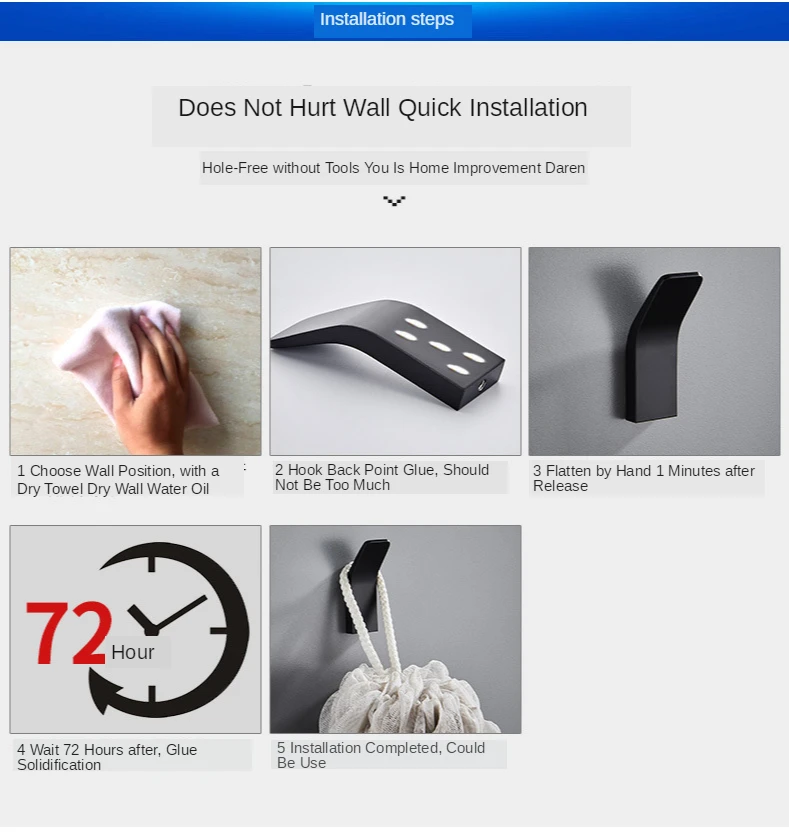 Крючки для халатов, не требующие отверстий, черные, для полотенец, ...
