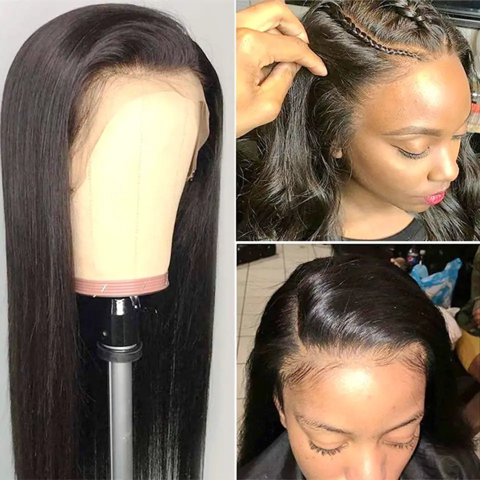Бразильские бесклеевые прямые парики из человеческих волос 13x4 со шнуровкой спереди, швейцарские волосы от уха до уха, Детские волосы, предварительно выщипанные натуральные для черных женщин