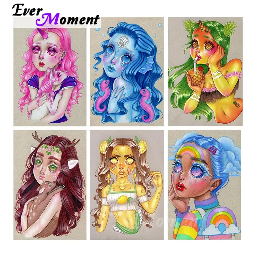 Алмазная картина с мультяшной девушкой Ever Instant, полноразмерная...