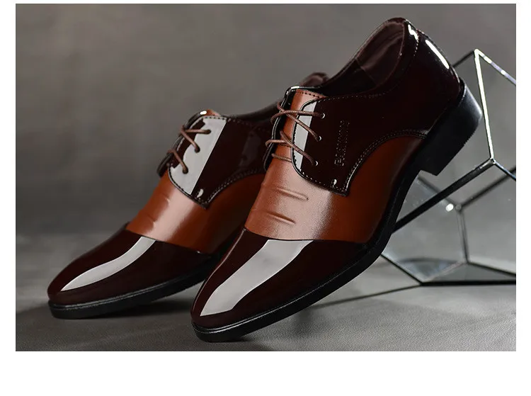 Туфли мужские из лакированной кожи, классические, черные, коричневы...
