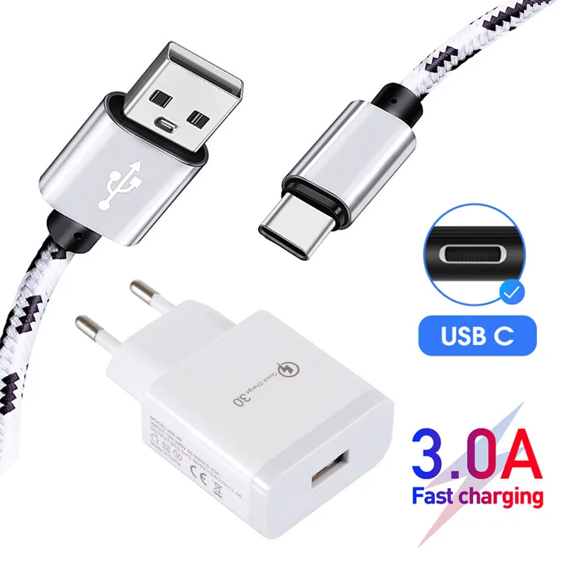18 Вт QC3.0 зарядное устройство для телефона с быстрой зарядкой USB 3,0 X адаптер питания с европейской вилкой USB кабель типа C для зарядки телефона USB C провод для Samsung Galaxy S21 S9 S8 A12 A42 A52 5G usb кабель для Motorola G9 Plus g9 Play LG Velvet K41S K51S для Xiaomi Redmi Note 10s 10 9 pro мобильный телефон кабели зарядного устройства длиной 1 м/2 м.