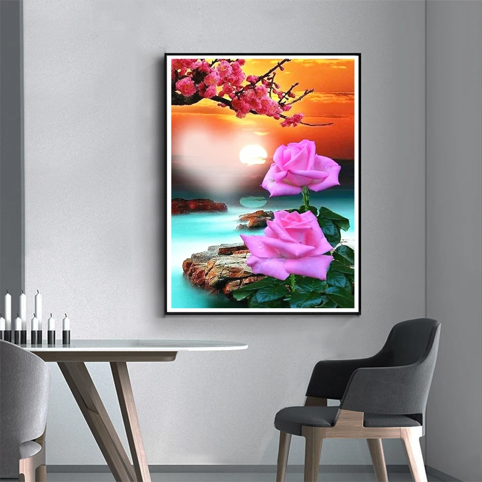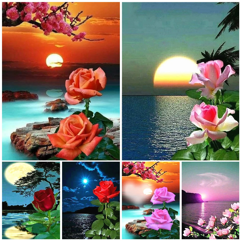 5D DIY алмазная живопись, с цветочным принтом розы для вышивания крестиком камни в форме ромба Стразы Алмазная вышивка пейзаж украшение для дома в виде картины DIY
