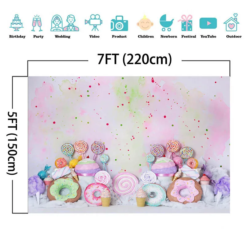 Фон для студийной фотосъемки детей с изображением сладких Конфет Торта на день рождения пончиков леденцов мороженого граффити