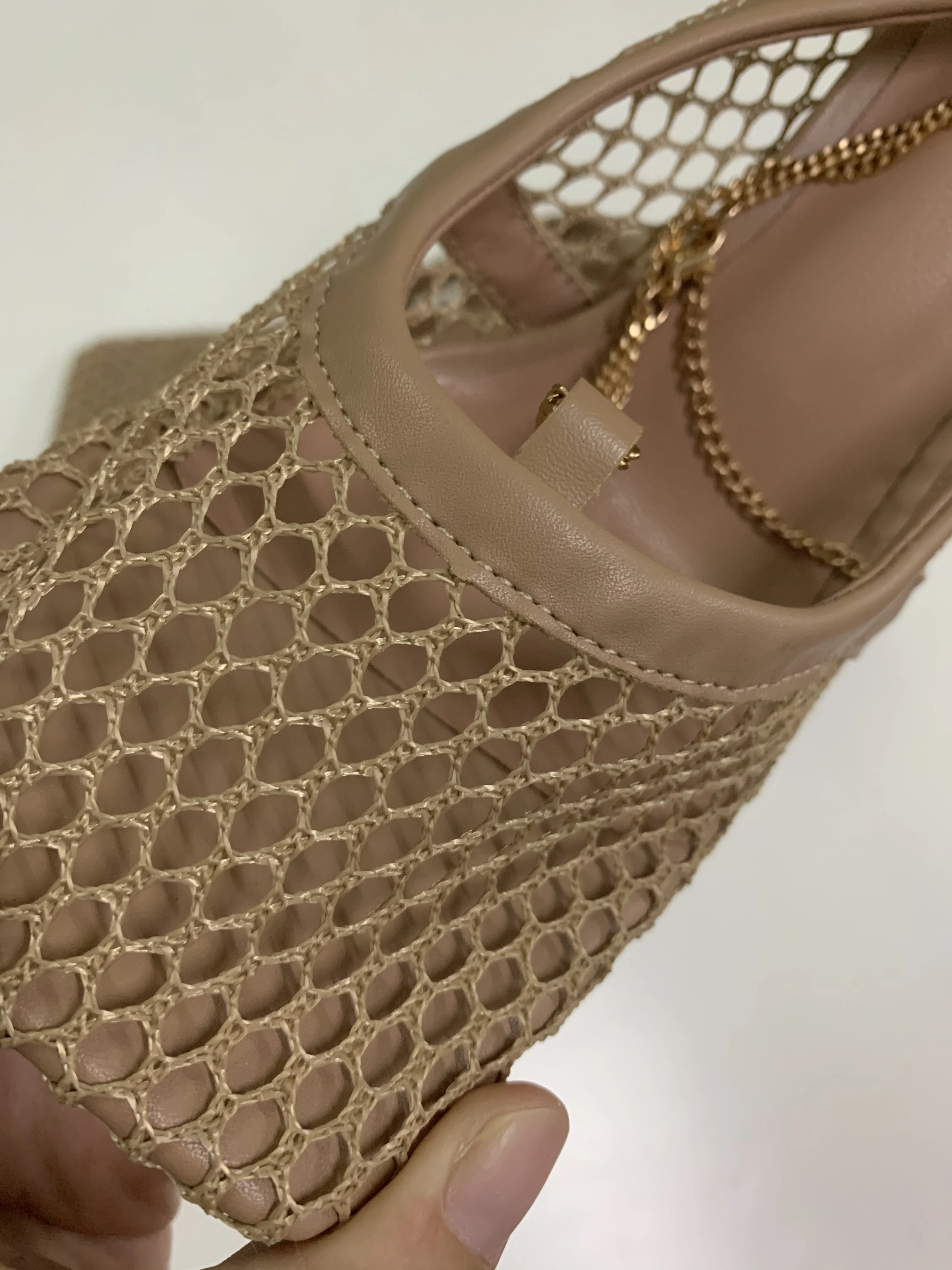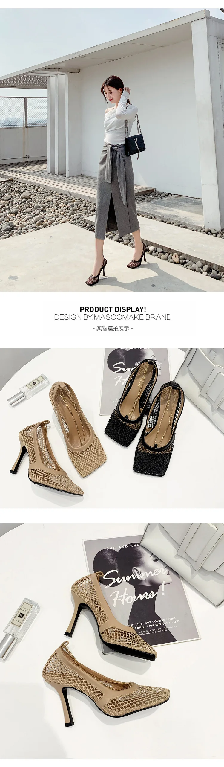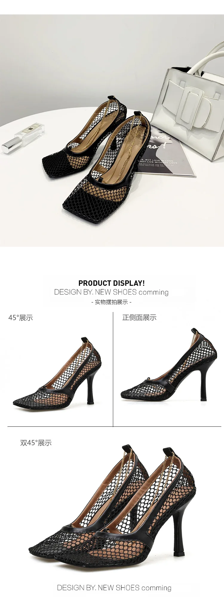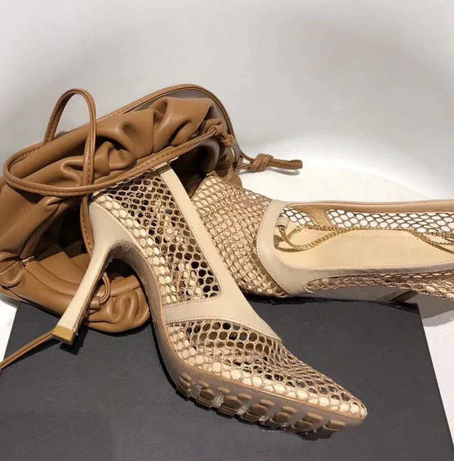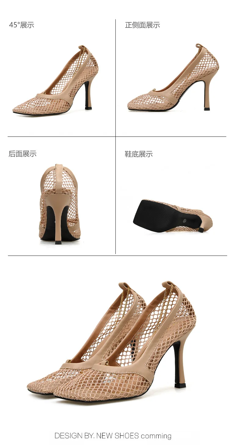 Сандалии Fujin женские с квадратным носком, пикантные сетчатые босоножки на высоком каблуке 9 см, с цепочкой, на шпильке, вечерние туфли-лодочки, обувь для вечеринки, лето-осень