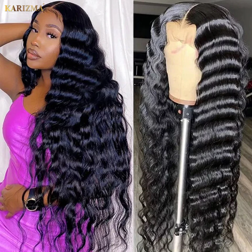 Бразильский Свободный парик с глубокой волной 13x4, парик на сетке спереди, вьющиеся человеческие волосы, парики для черных женщин, 180% плотность, Remy, 13X6, свободные волнистые парики