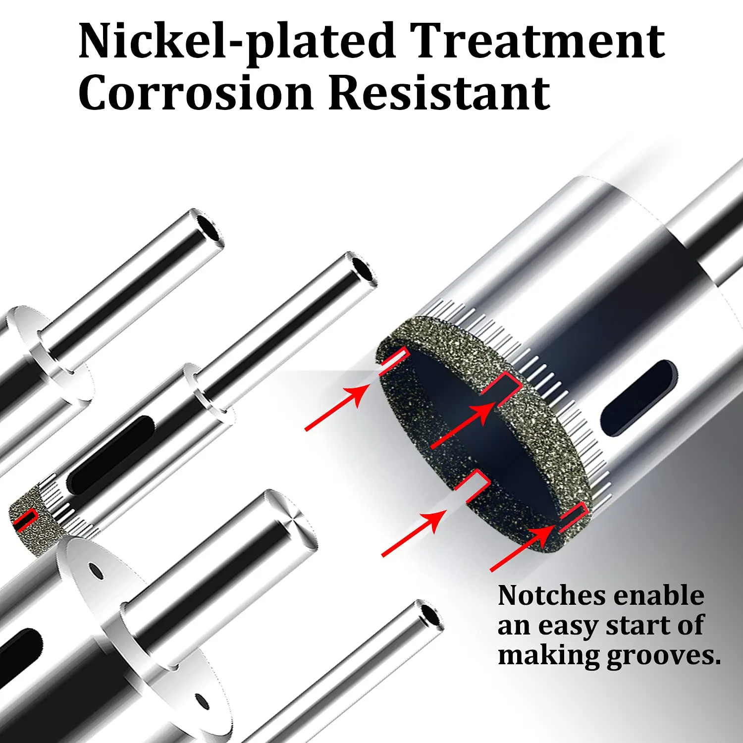 Набор алмазных корончатых пил, комплект из 6 -75 мм, с алмазным покрытием, для керамических, фарфоровых и стеклянных дрелей, с антикоррозийным покрытием