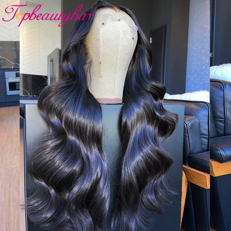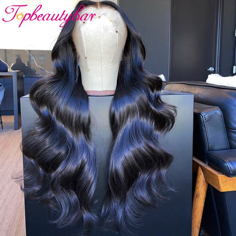 Парики из натуральных волос темно-синего цвета, волнистые, 13x 4