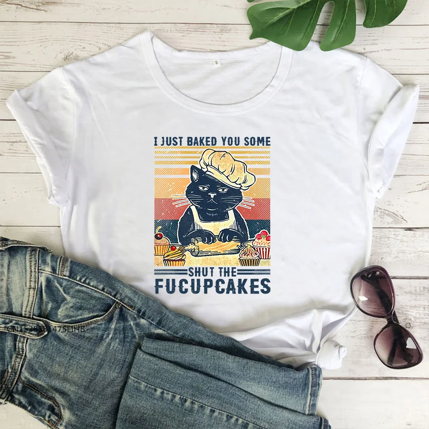 Футболка в стиле ретро, с забавным котенком, домохозяйкой, рисунком я запекал тебя, закрою капкейк, винтажные популярные футболки