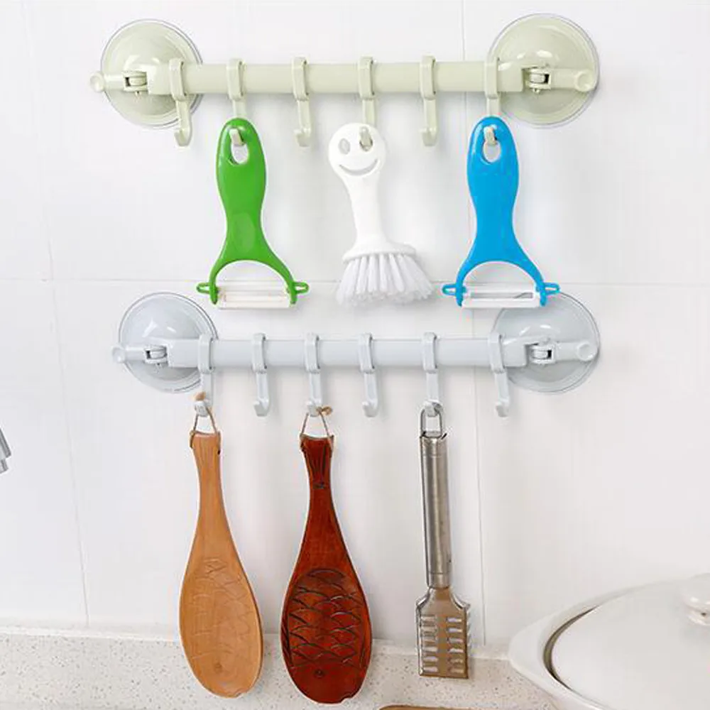 Настенная вакуумная стойка на присоске, 6 крючков, Держатель для по...