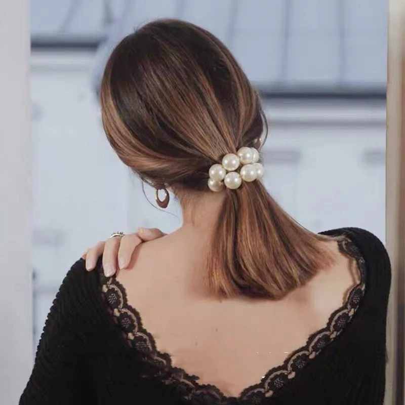 Резинка для волос с жемчугом женская, эластичная заколка для хвоста...