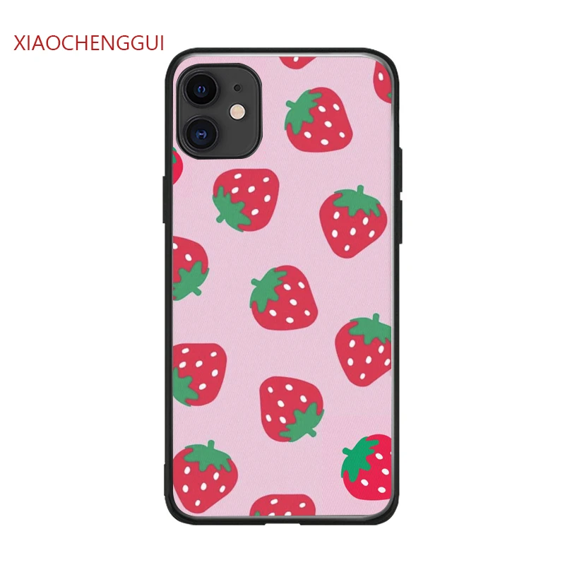 Чехол для телефона для iphone 6, 6S, 7, 8 plus X Xs Max XR 11 12 MINI Pro 5 5S SE Мягкая силиконовая розового цвета с нарисованной клубничкой; coque Fundas