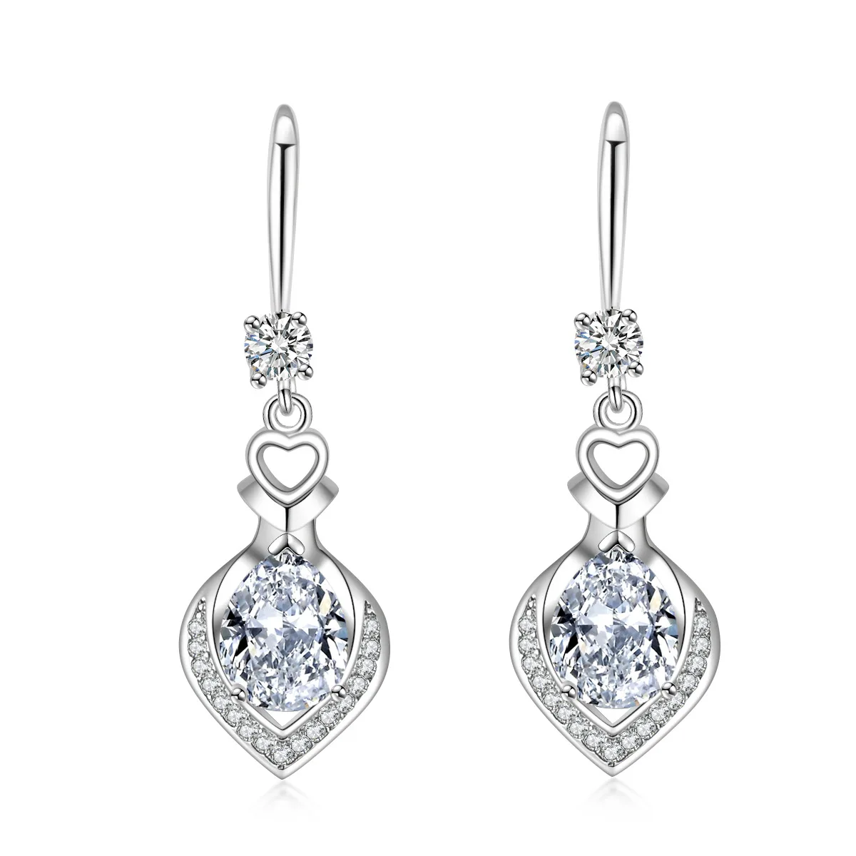 Серьги-подвески в форме сердца женские, Винтажные висячие серьги серебристого цвета с белыми, розовыми, синими каплями в форме капель воды, свадебная бижутерия, хороший подарок для невесты