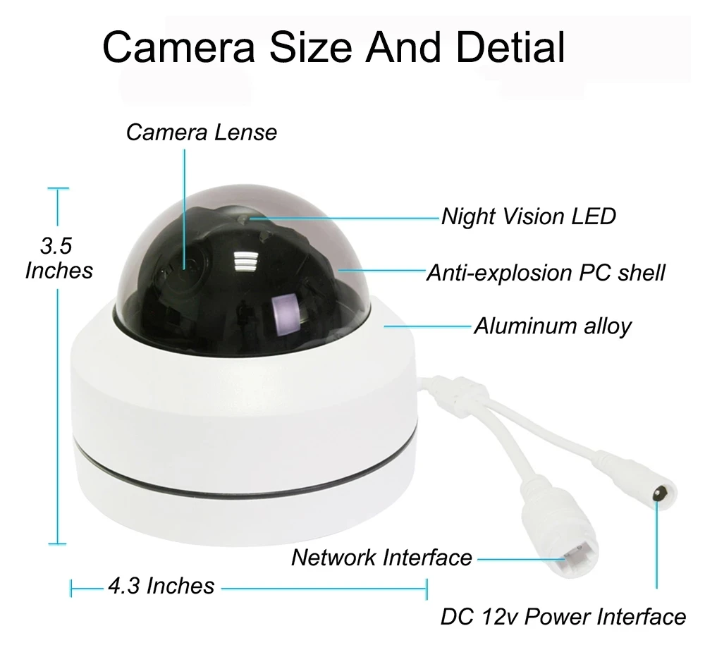 * Общий металлический корпус, металлический купол, ИК дальность действия до 30 метров
