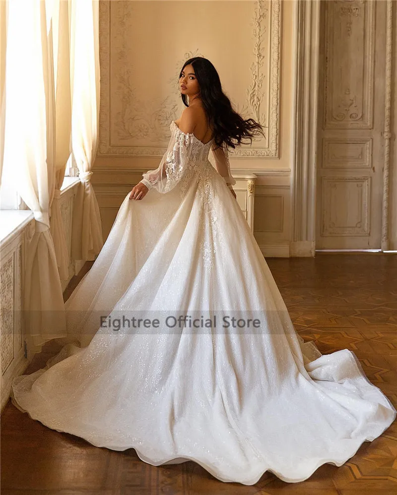 Сексуальное свадебное платье из органзы с длинным рукавом, а-силуэт...