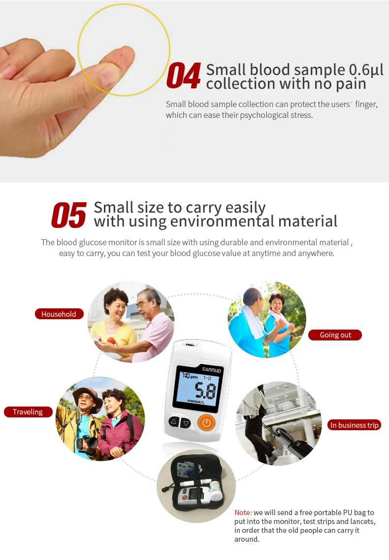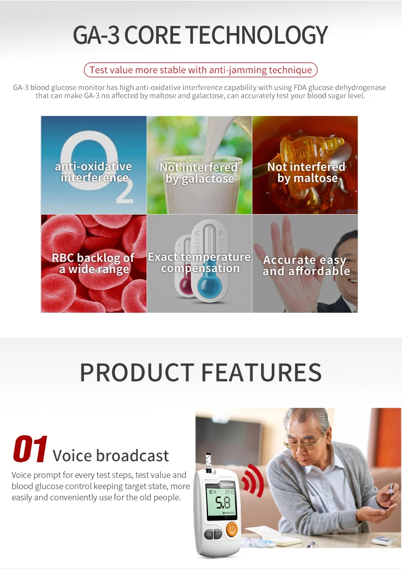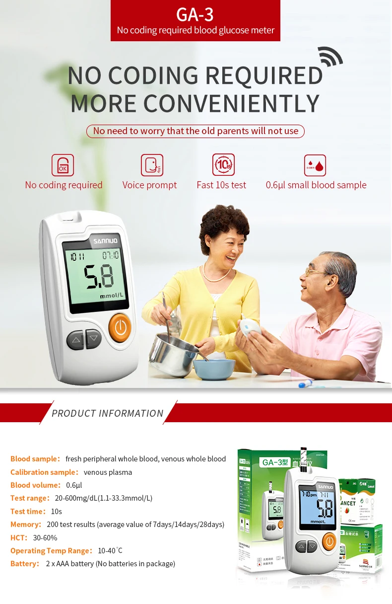 GA-3 глюкометр, монитор для измерения уровня сахара в крови при диабете с 100 тест-полосками и ланцетом