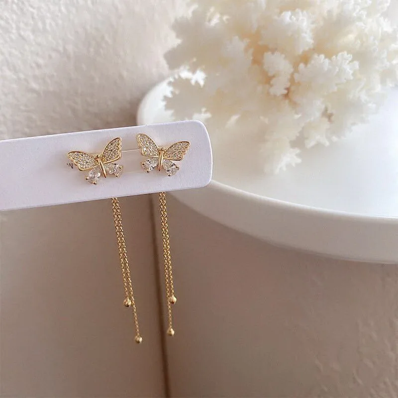 Женские длинные серьги-кисточки в Корейском стиле, милые элегантные серьги-бабочки для Стразы, висячие, геометрической формы, ювелирные изделия, новинка 2021