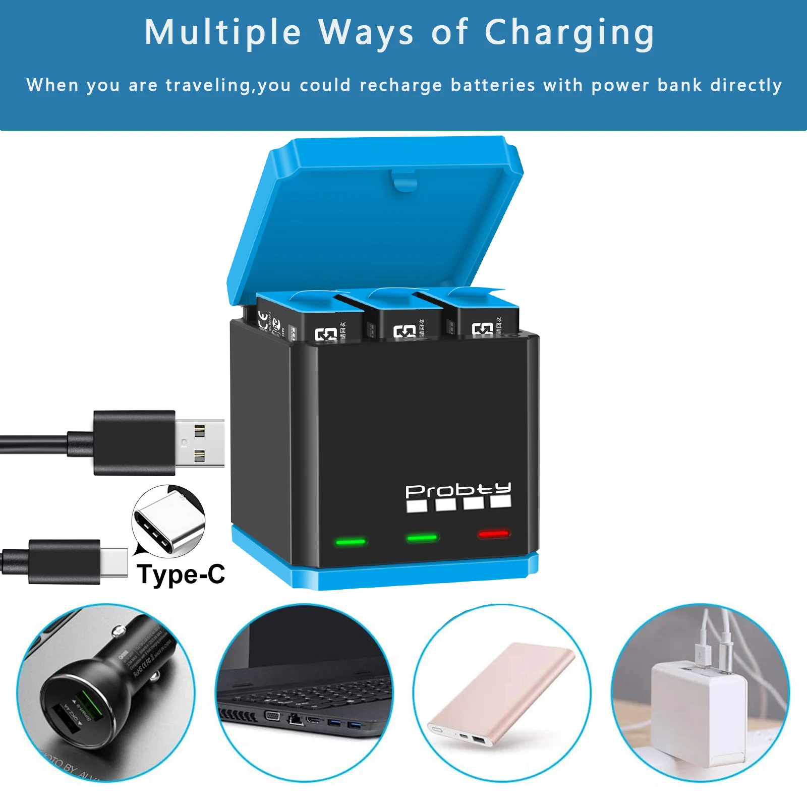 Для GoPro Hero 10 9 3 Слот для карт со светодиодной подсветкой зарядное устройство для аккумулятора чехол для телефона черный