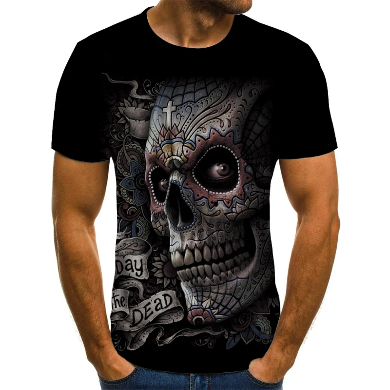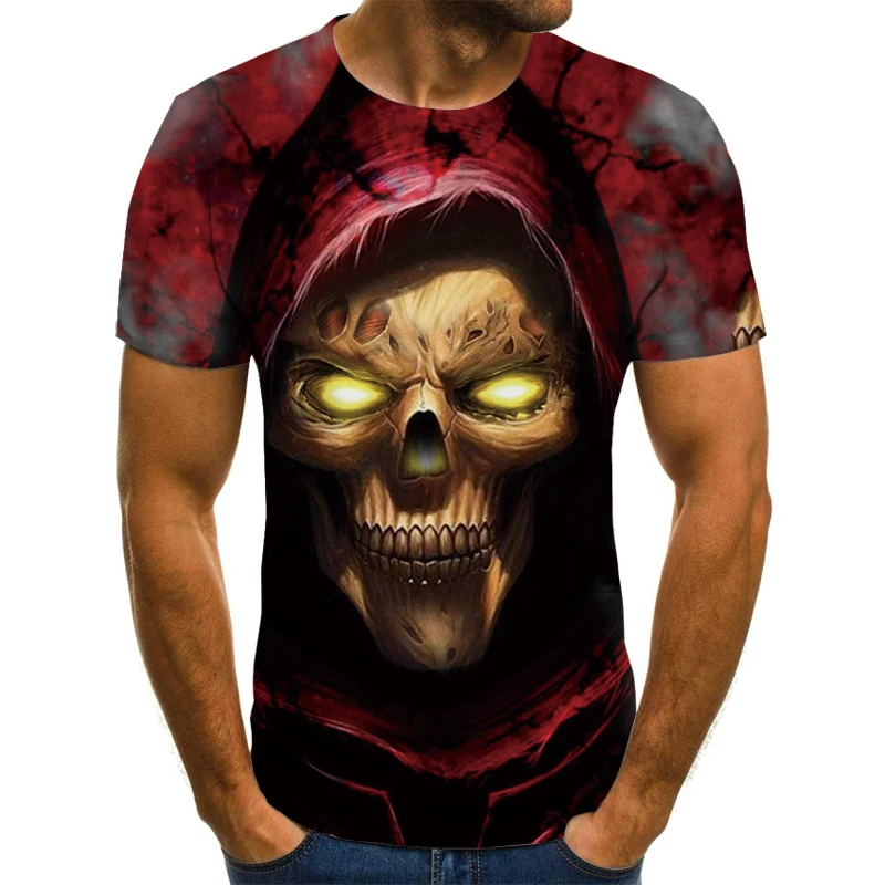 Футболка мужская с принтом черепа и покера, тенниска с коротким рукавом, Детская Повседневная дышащая майка 3D, лето