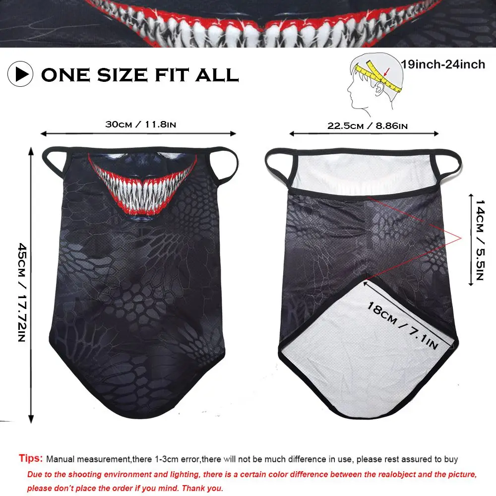 100% полиэстер из микрофибры и UV50 + «солнцезащитный крем» для защиты от 99% УФ-лучей: эластичное волокно, Высококачественная мягкая и удобная маска, недешевый материал, который легко снимается или рвется; он тонкий и легкий, но теплый и дышащий; Защищает ваше лицо от солнца, ветра, пыли, песка Не скользит: эластичное волокно удерживает маску на месте и не сползает Мульти-шарф: маска с черепом для мужчин, мальчиков, женщин, девочек, молодежи: использование в качестве повязки на голову, шарфа, полумаски для лица, маски для лица, запястья, повязки на голову, шейного платка, балаклавы и шляпы; Многократное использование: бег, охота, рыбалка, пеший туризм, мотоцикл, катание на лыжах, сноуборде и снегоходе, езда на горах, велосипеде; Идеально подходит для байкеров, пеших прогулок, занятий спортом, фестивалей #1. Удобные, высокоэластичные, тонкие, легкие, мягкие, дышащие, бесшовные, гибкие, отводят влагу. #2. Многофункциональный дизайн-бандану можно носить разными способами, ее можно использовать как гетры на шею, Балаклаву, пиратскую тряпку, повязку на руку, браслет, шапочку, подкладку для шлема, бандану, шарф, повязку на голову, защита от пыли или ободок для волос. Это универсальный продукт, которым каждый может наслаждаться. #3. Инструкции по стирке-машинная стирка. Материал: полиэфирные микроволокна Подходит для: мужчин/женщин Особенности: отсутствие швов/Отличная гибкость/не деформируется/не выцветает/можно стирать в стиральной машине Функция: защита от ветра/поглощение пота/сохранение тепла/воздухопроницаемость