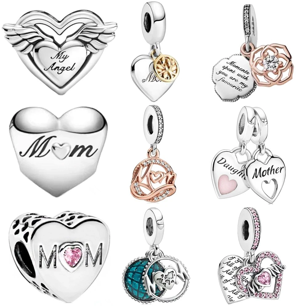 Новый 925 стерлингового серебра семья Love MoM (Я люблю маму) кулон драгоценные бусины, подходят к оригинальным браслетам Pandora, брелоки, мода для женщин, ювелирное изделие, подарок