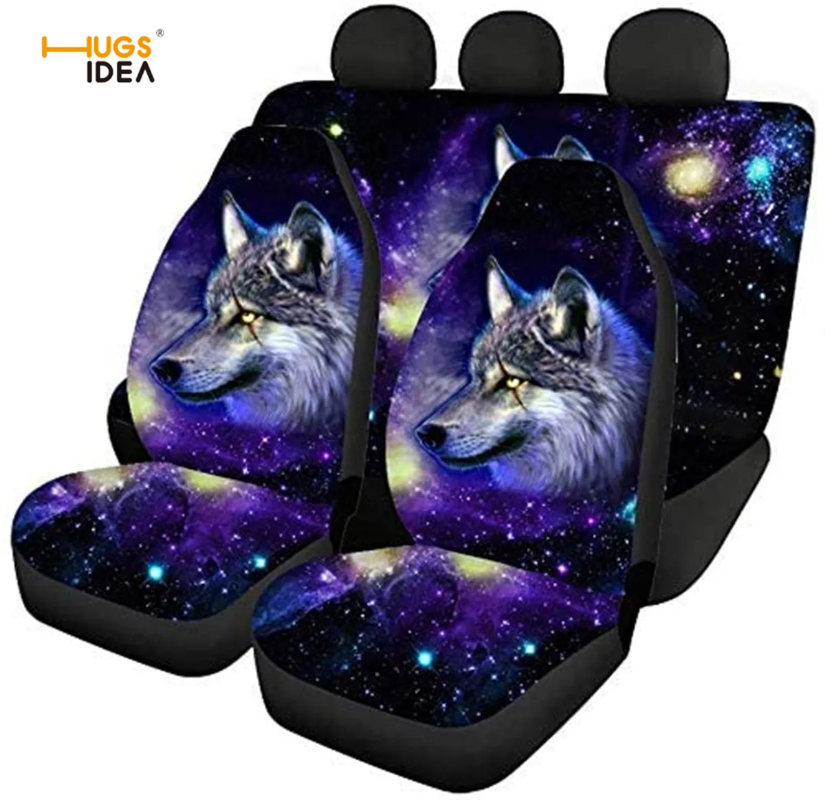 Чехлы на передние сиденья автомобиля, с принтом волка, 4 шт.комплект