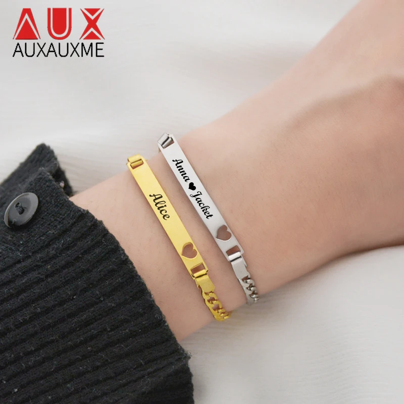 Браслеты Auxauxme с именем на заказ, в форме сердца, из нержавеющей стали золотого цвета, с гравировкой даты, Женские Ювелирные изделия для влюбленных, лучший друг