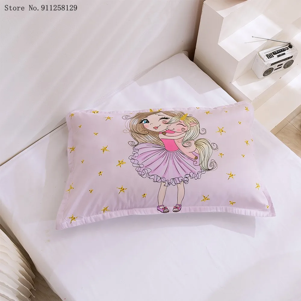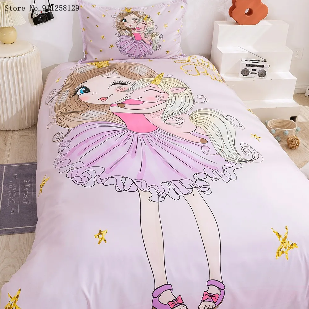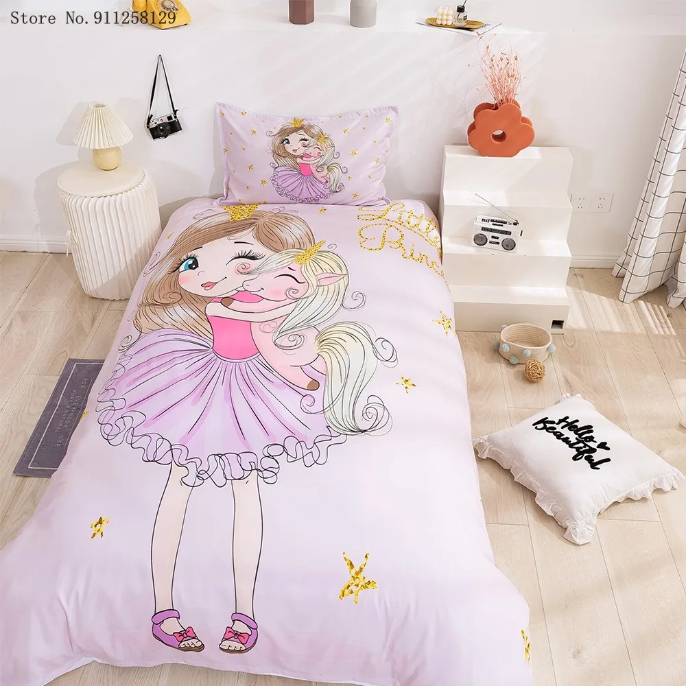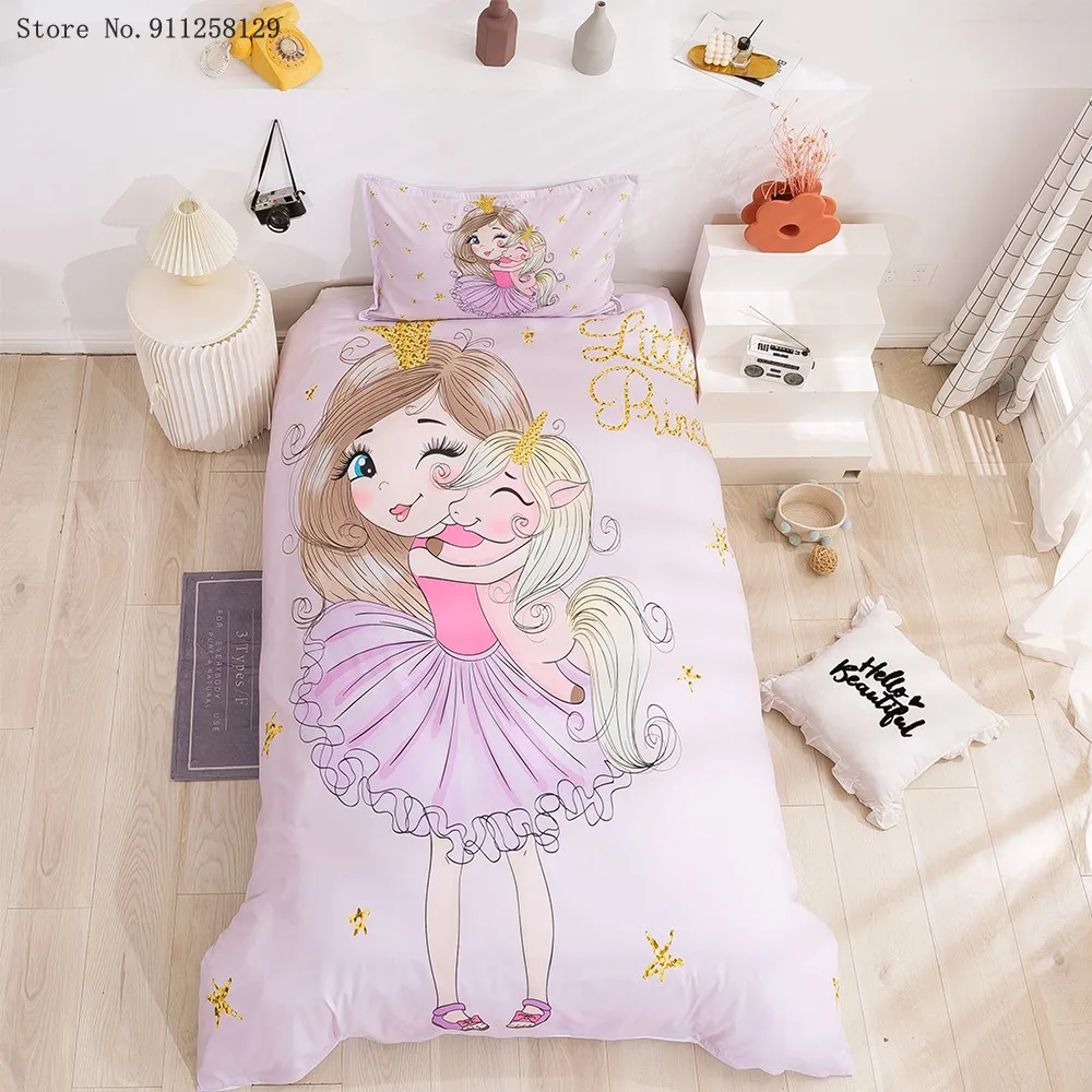 Набор из 23 предметов, пододеяльник для девочек и единорога, для спальни, пододеяльник, наволочка, без простыни, постельное белье Комплект Принцесса