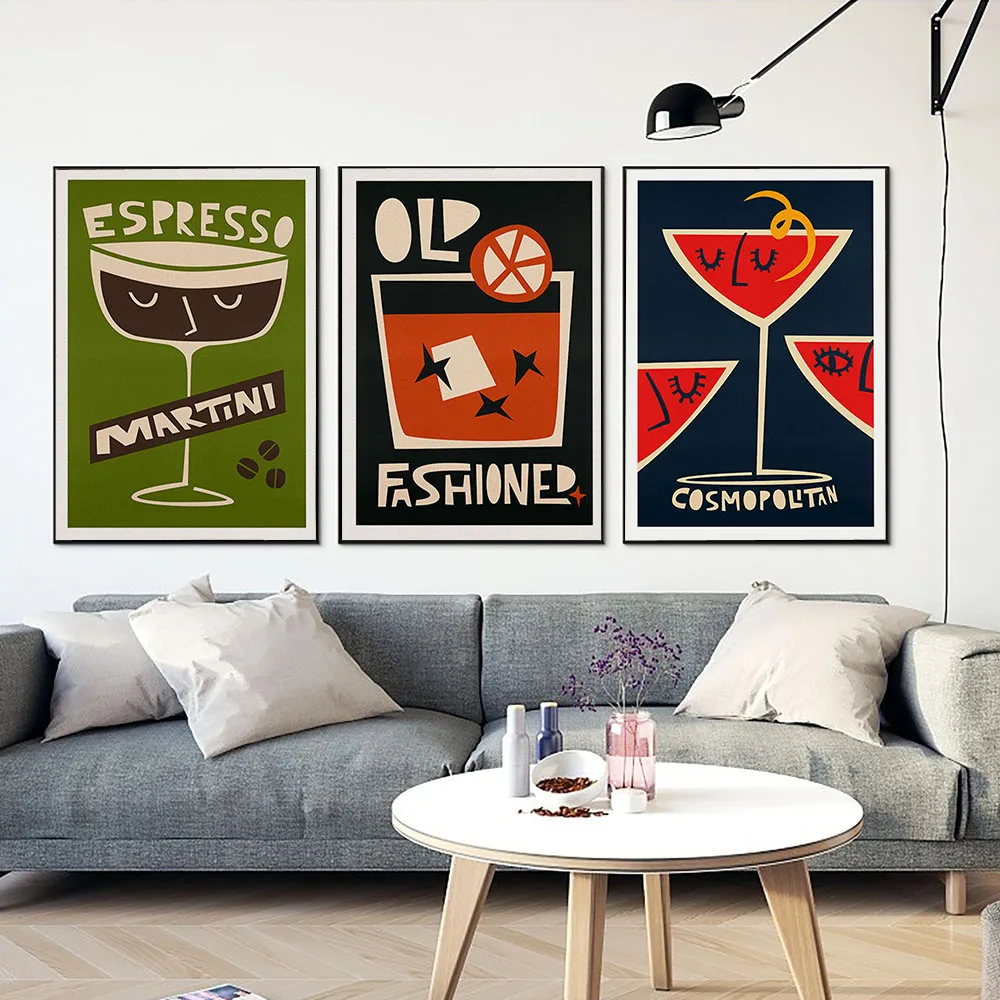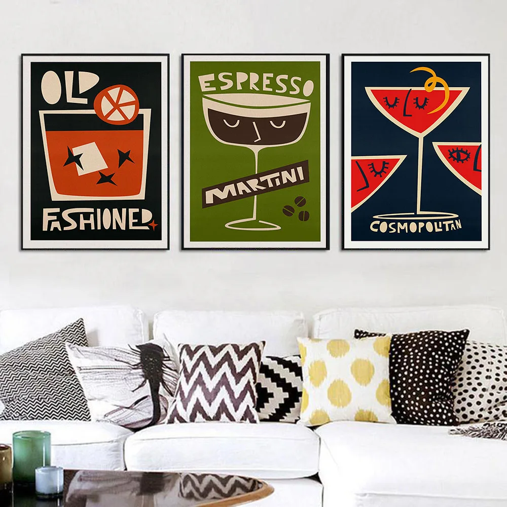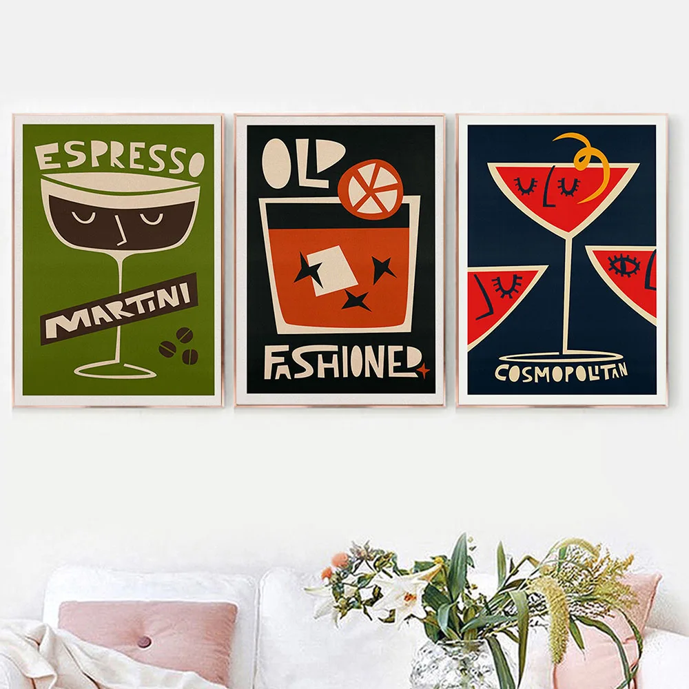 Ретро смешные абстрактные постеры и принты Коктейльная Печать холст Картина Бар Настенные картины для кухни комнаты домашний Декор без рамки