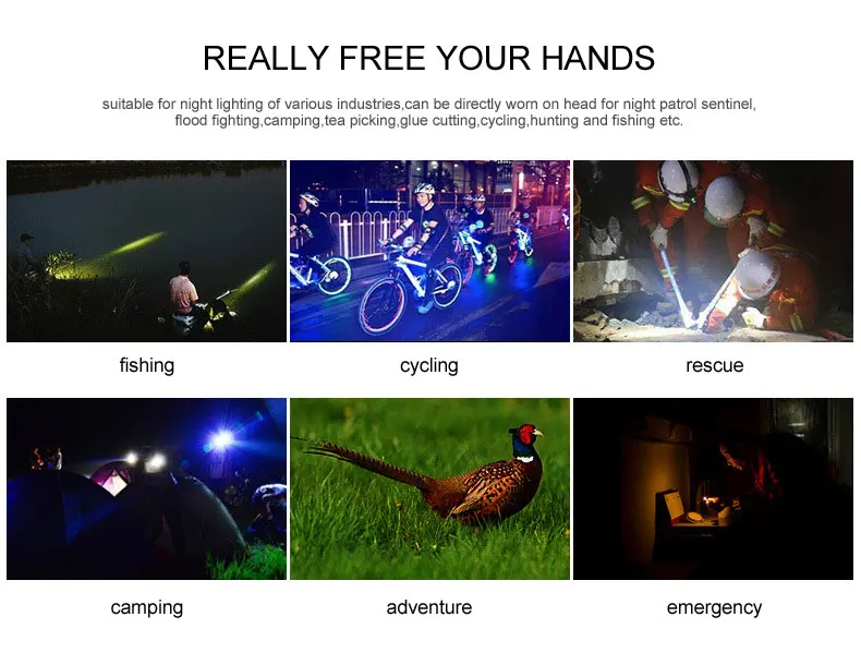 Встроенная сверхъяркая перезаряжаемая головная лампа высокой мощности, водонепроницаемая уличная рыболовная фара с 5 лампами, дышащий ремешок