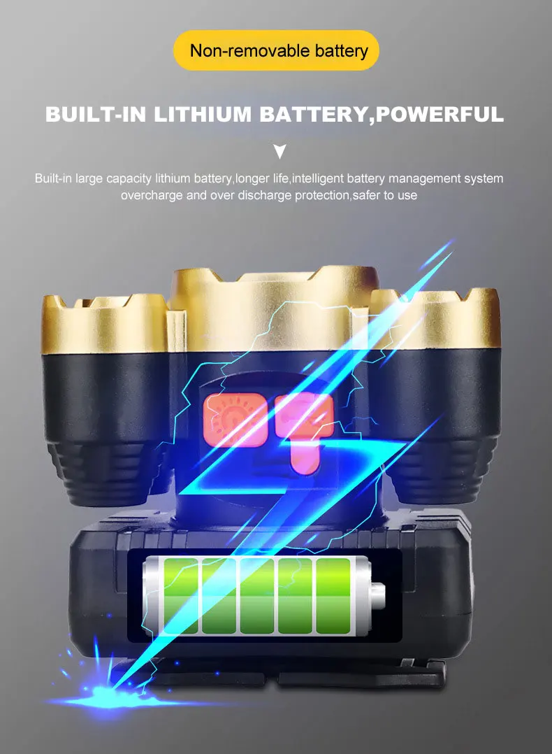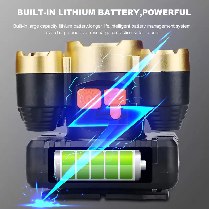 Встроенный сверхъяркий перезаряжаемый налобный фонарь высокой мощности, водонепроницаемый налобный фонарь для рыбалки на открытом воздухе, 5 ламп, дышащий ремешок