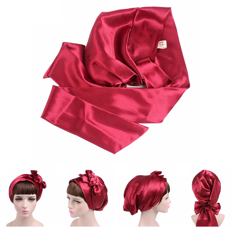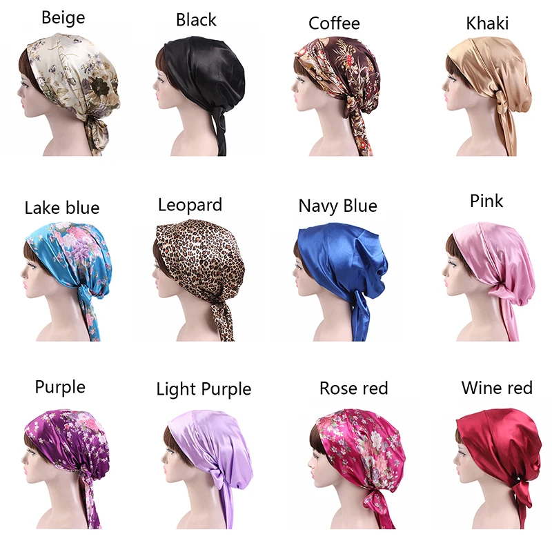 Для женщин шелковая душ Кепки ночного сна Кепки волос шляпа головных уборов атласная тюрбан, головной платок