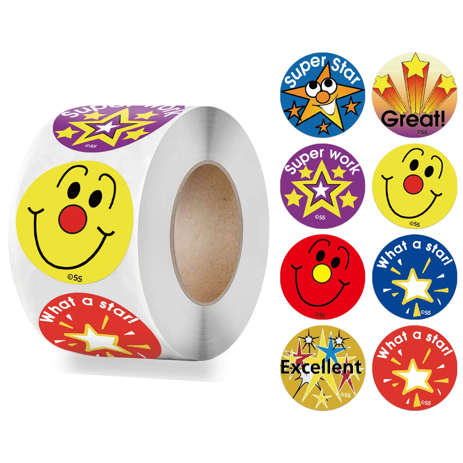 Наклейки с английскими надписями для детей, 500 шт.рулон, Детские милые наклейки с мультяшным рисунком, ярлыки для учителей