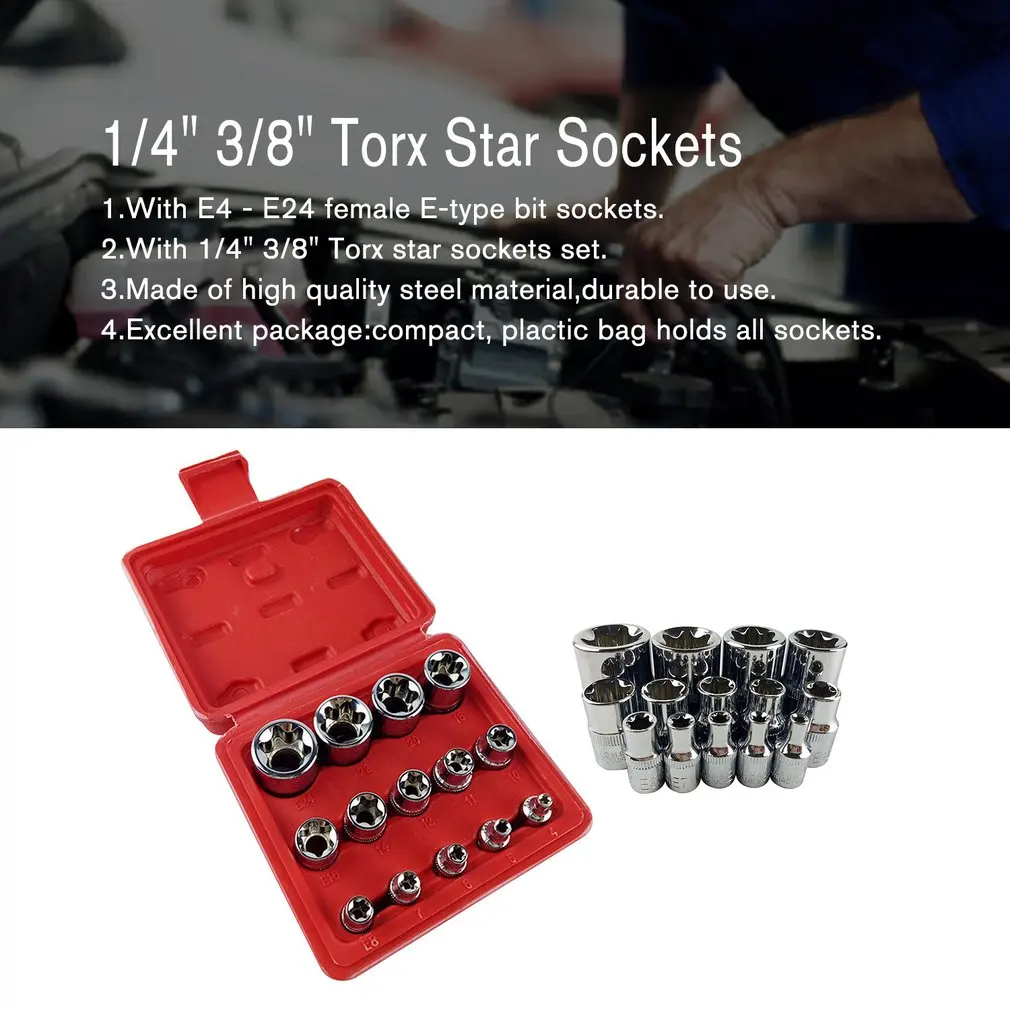 14 шт.компл. Женский комплект торцевых головок типа Е, головка гаечного ключа E4 - E24 14 дюйма 38 дюйма, Набор торцевых головок звезды, ручные инструменты для авторемонта