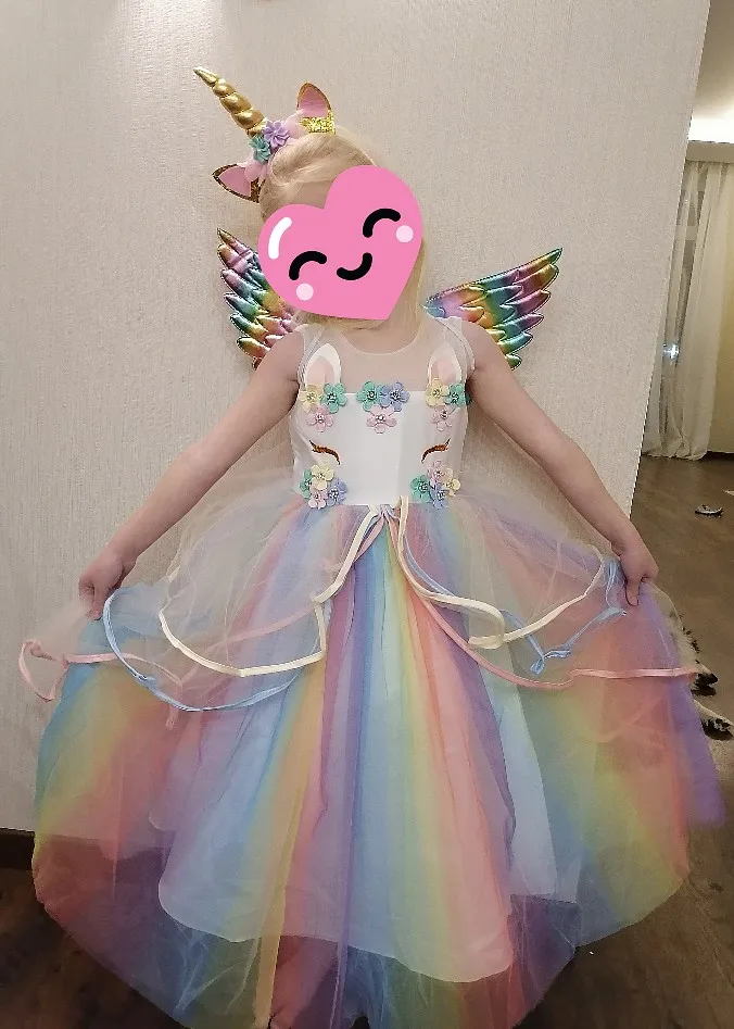 Детское длинное платье для девочек, с единорогом, радужной расцветкой, для свадьвечерние, Хэллоуина
