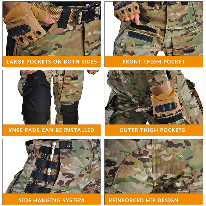 Камуфляжная ткань: 40% полиэстер + 60% хлопок: прочная ткань Рипстоп, подходит для быстрого движения.