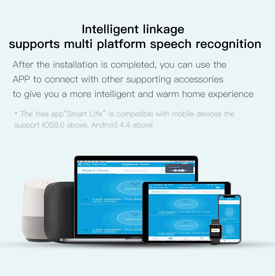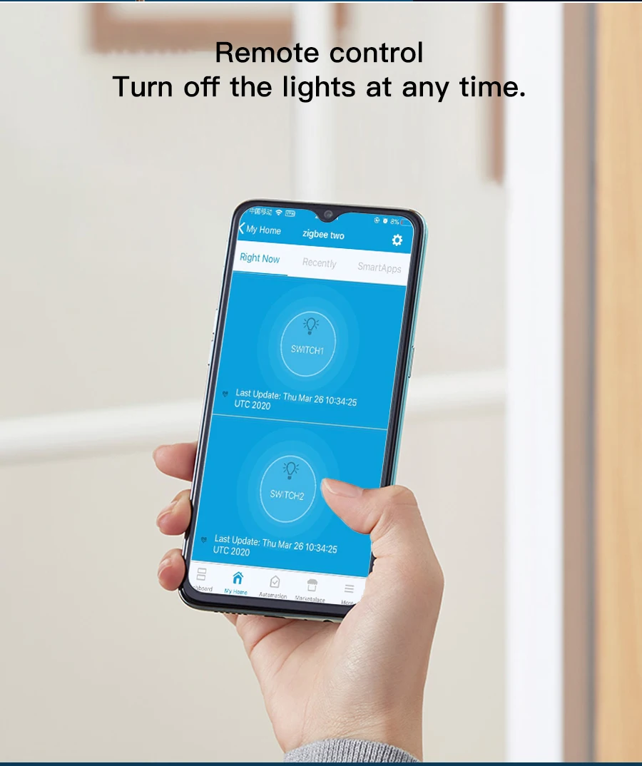 Используйте популярные приложения smart life и android/ios. Как Alexa, Echo и Google Home, что облегчает жизнь. Даже если вы не дома, вы можете использовать мобильное приложение для удаленного управления устройством из любого места и управления освещением ВКЛ/ВЫКЛ в любое время. Но не может работать с TUYA ZIGBEE 3,0 HUB.