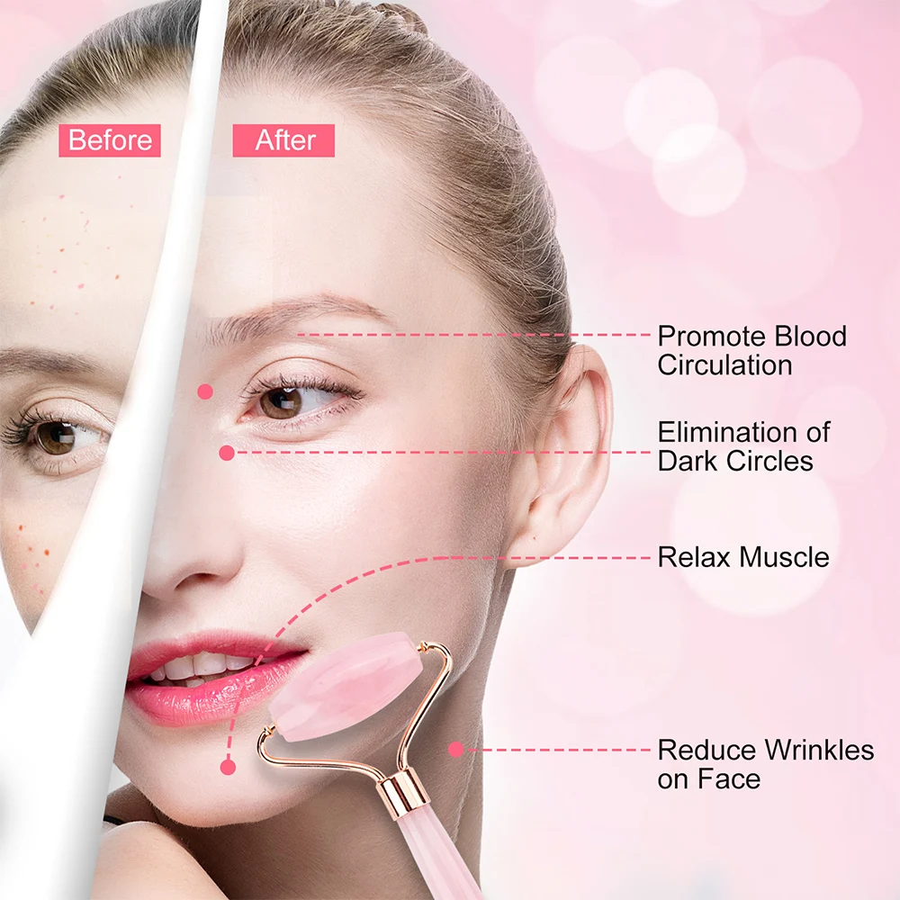 Преимущества против старения1. Снимает напряжение лица2. Улучшает эластичность кожи и тонизирует кожу3. Препятствует появлению тонких линий и морщин4. Уменьшает отечность, мешки для глаз и темные круги вокруг глаз5. Помогает проникнуть в косметику, как кремы для лица и сыворотки глубже в кожу для лучшего поглощения6. Способствует циркуляции крови к лицу для естественного здорового свечения