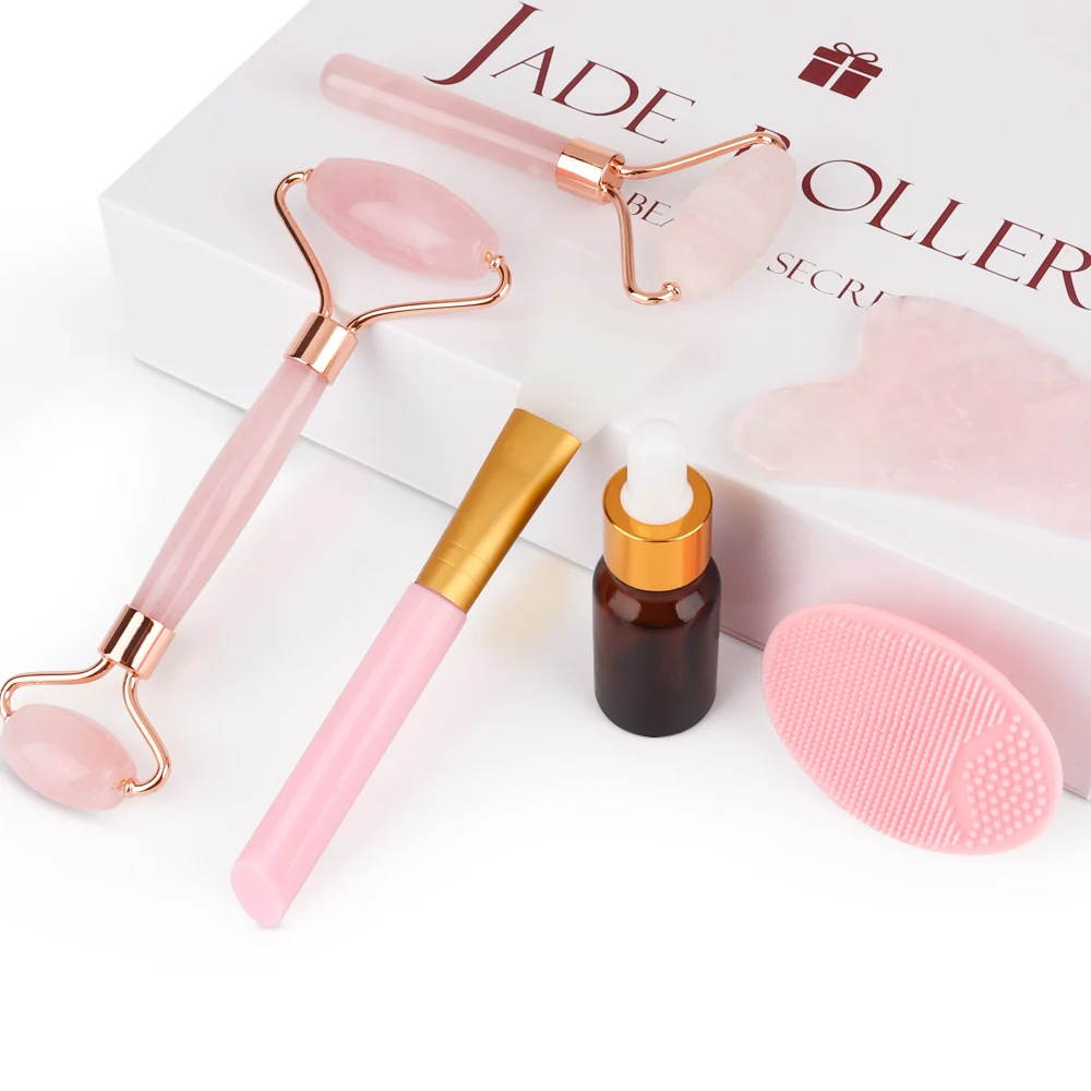 Набор для массажа лица гуаша, Нефритовый массажный ролик для ухода за кожей лица, розовый кварц, в подарочной коробке