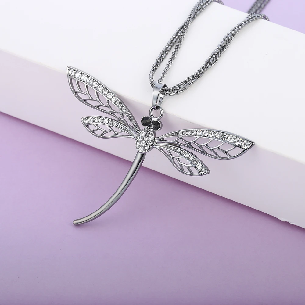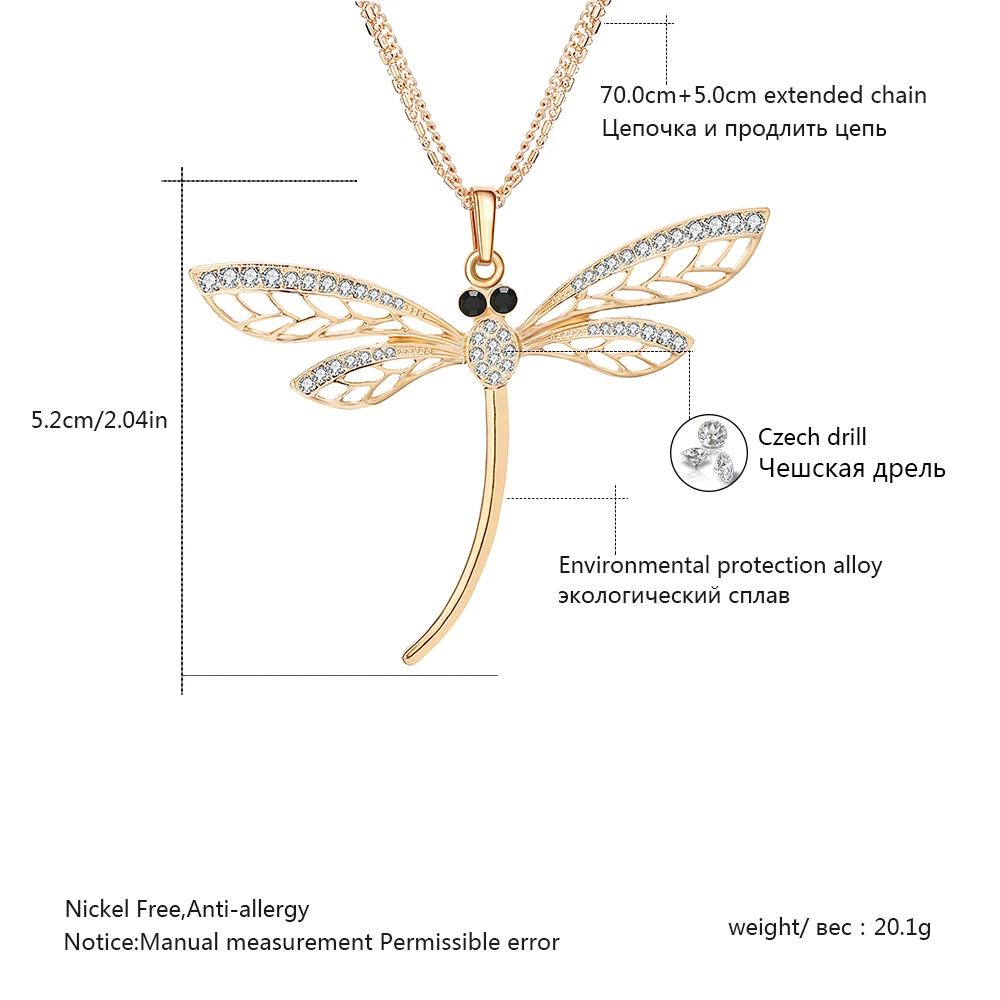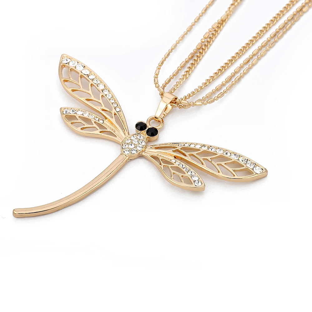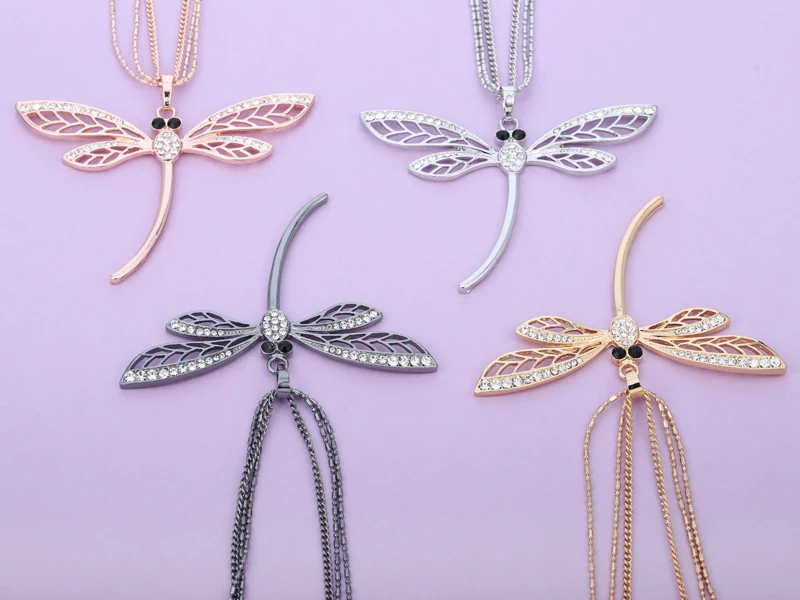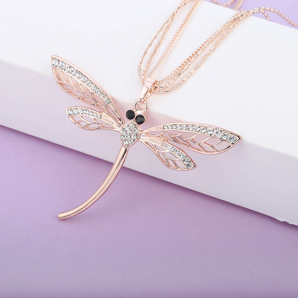 Элегантное модное ожерелье с подвеской в виде стрекозы с кристаллами розовое золотосеребро длинный кулон на свитер для женщин ювелирные изделия подарок 2021