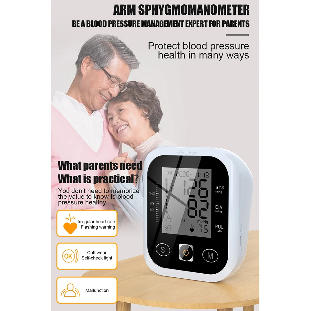 Тонометр для верхней части руки ЖК-дисплей Дисплей Трехцветная подсветка электронный автоматический тонометр хранение данных крови Давление монитор