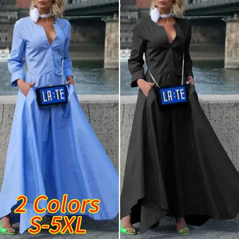 Осеннее платье-макси 2021 VONDA, винтажное пляжное платье с длинным...