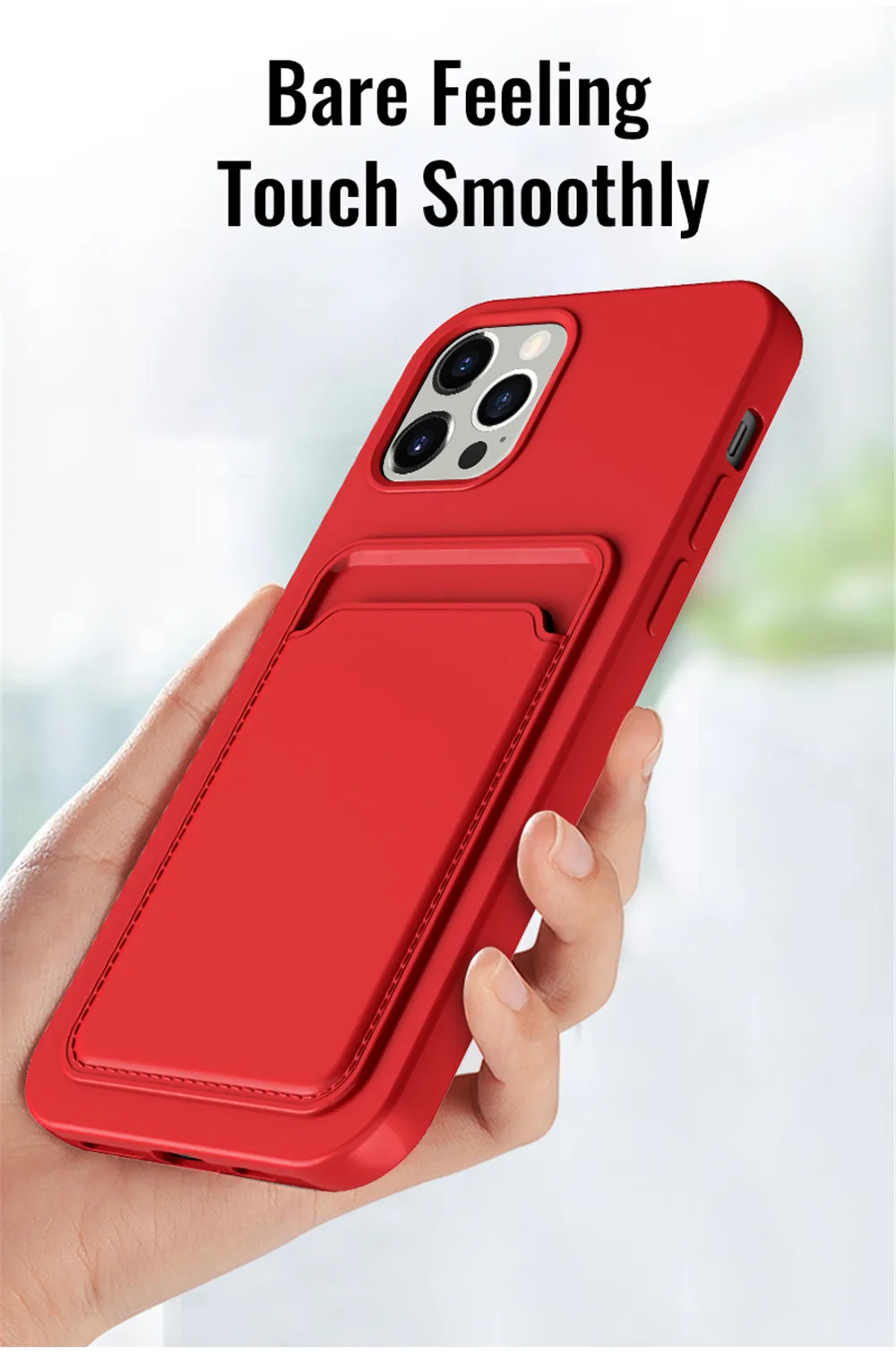 Держатель для карт карамельный цвет Противоударный бампер для iPhone 12 Pro Max 11 Pro Max XS Max XR X 7 8 Plus Мягкий жидкий силиконовый чехол