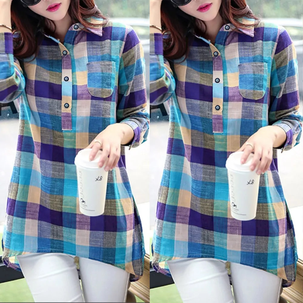 Блузка женская Повседневная на пуговицах, свободная клетчатая рубашка сочетающихся цветов с длинным рукавом, топ, лето 2020