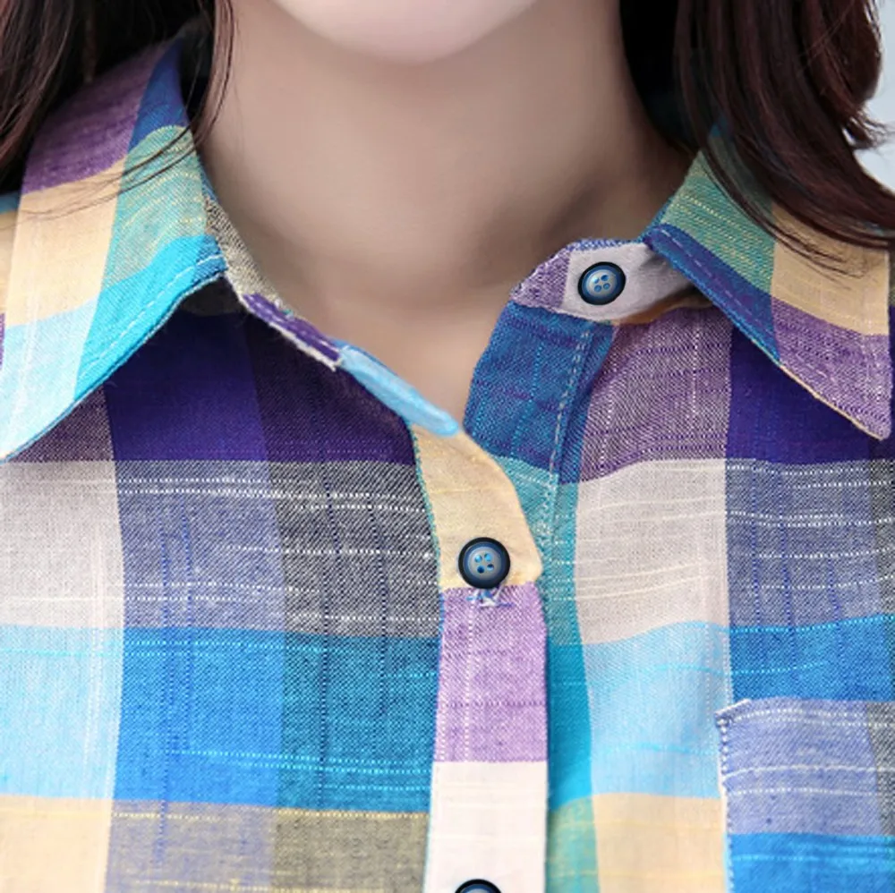 Женская Повседневная рубашка в клетку с длинным рукавом