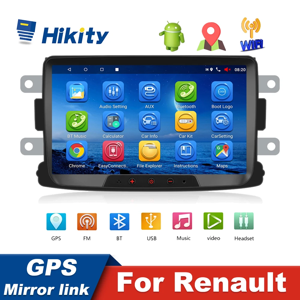 Автомагнитола Hikity, мультимедийный плеер на Android, с экраном 8 дюймов, GPS, Mirrorlink, для Renault DusterLoganDokker, типоразмер 2DIN