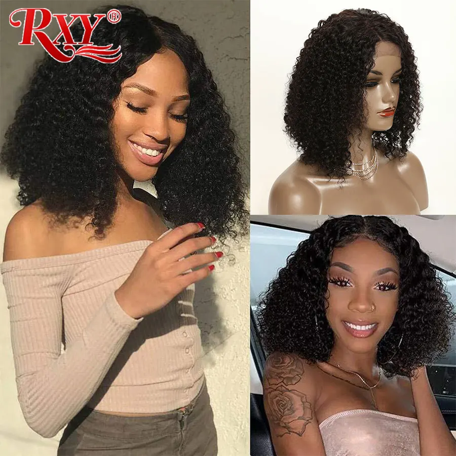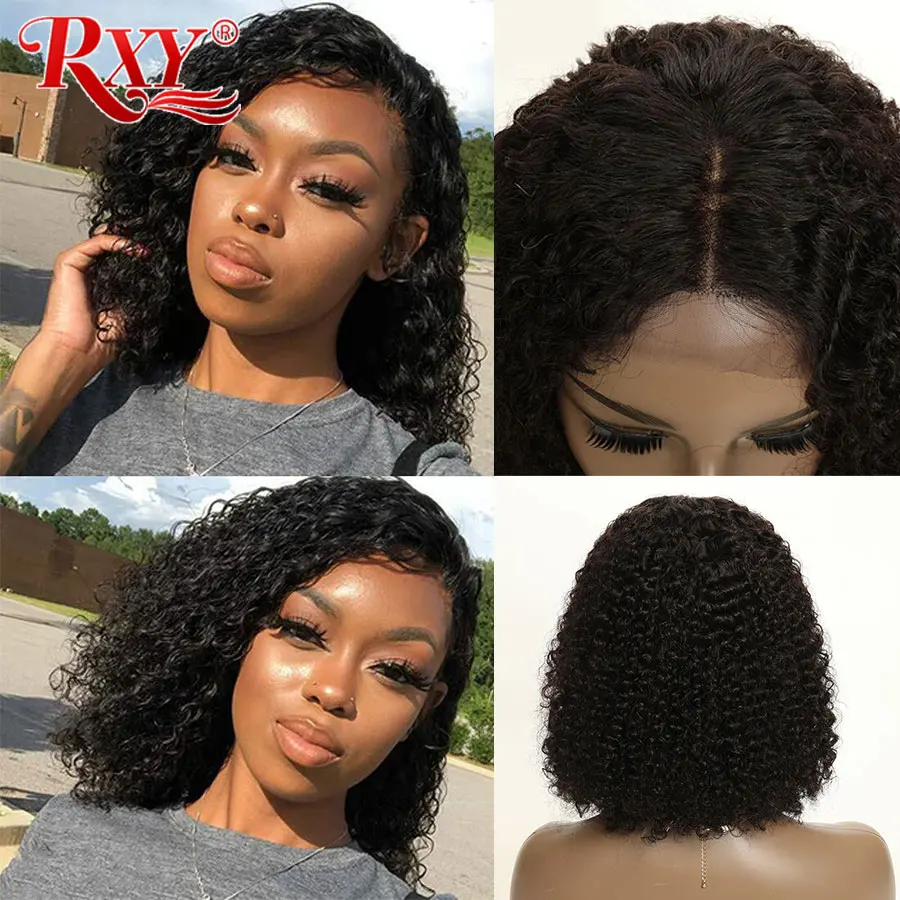 RXY кудрявый парик Боб парики из натуральных волос на сетке для женщин 4x4 парик с застежкой предварительно выщипанные с детскими волосами короткий Боб кудрявый парик из натуральных волос